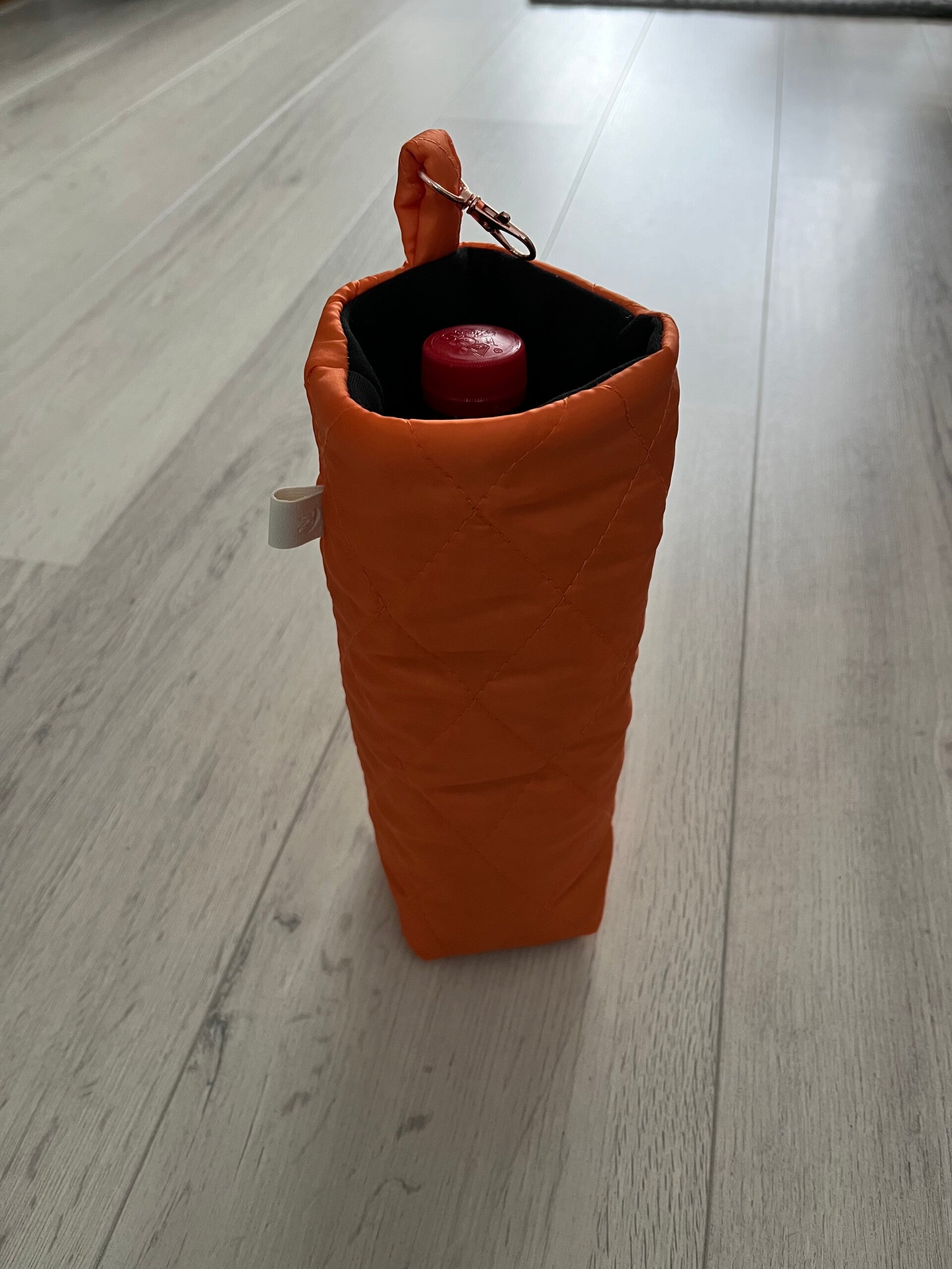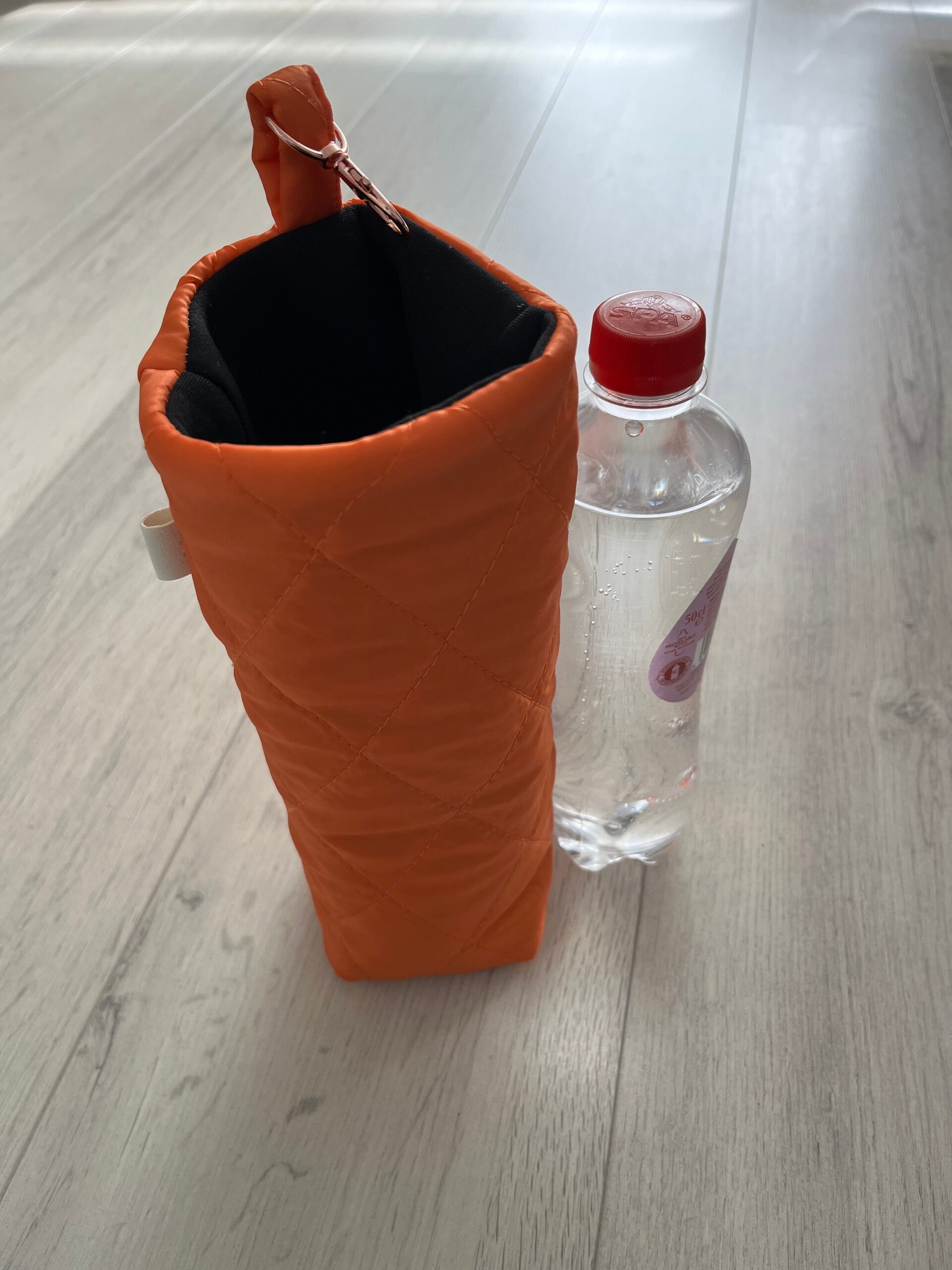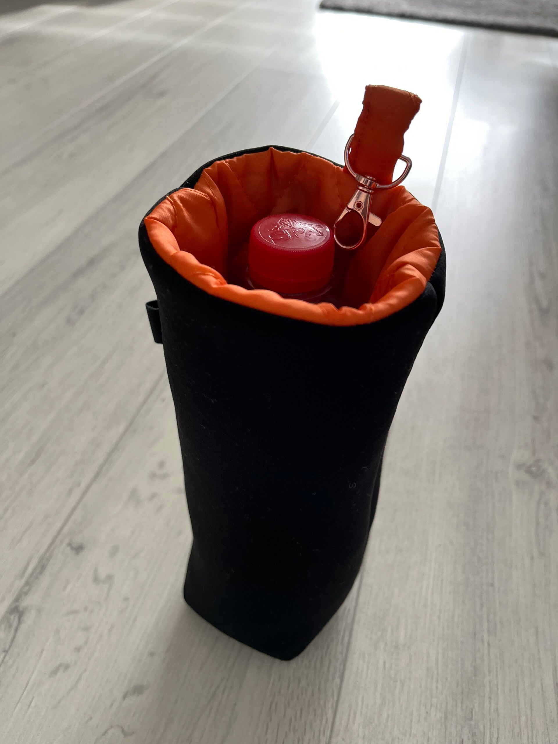 Handig flessentasje om aan een lusje van je broek te hangen, of aan de riem van je tas. Dan heb je je handen vrij. Aan twee kanten te gebruiken.
