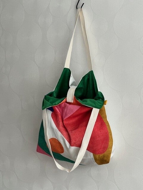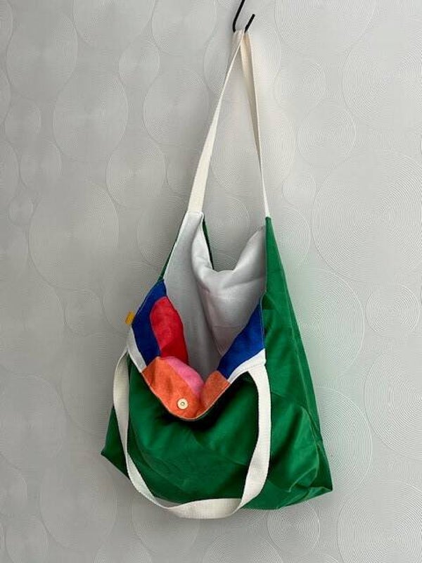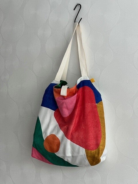 Supertoffe canvas shopper, gemaakt van kussenhoezen. Ze hebben aan beide zijden een leuke kleur /print en zijn aan beide kanten te dragen. De hengsels zijn lang zodat ze over de schouder te dragen zijn.